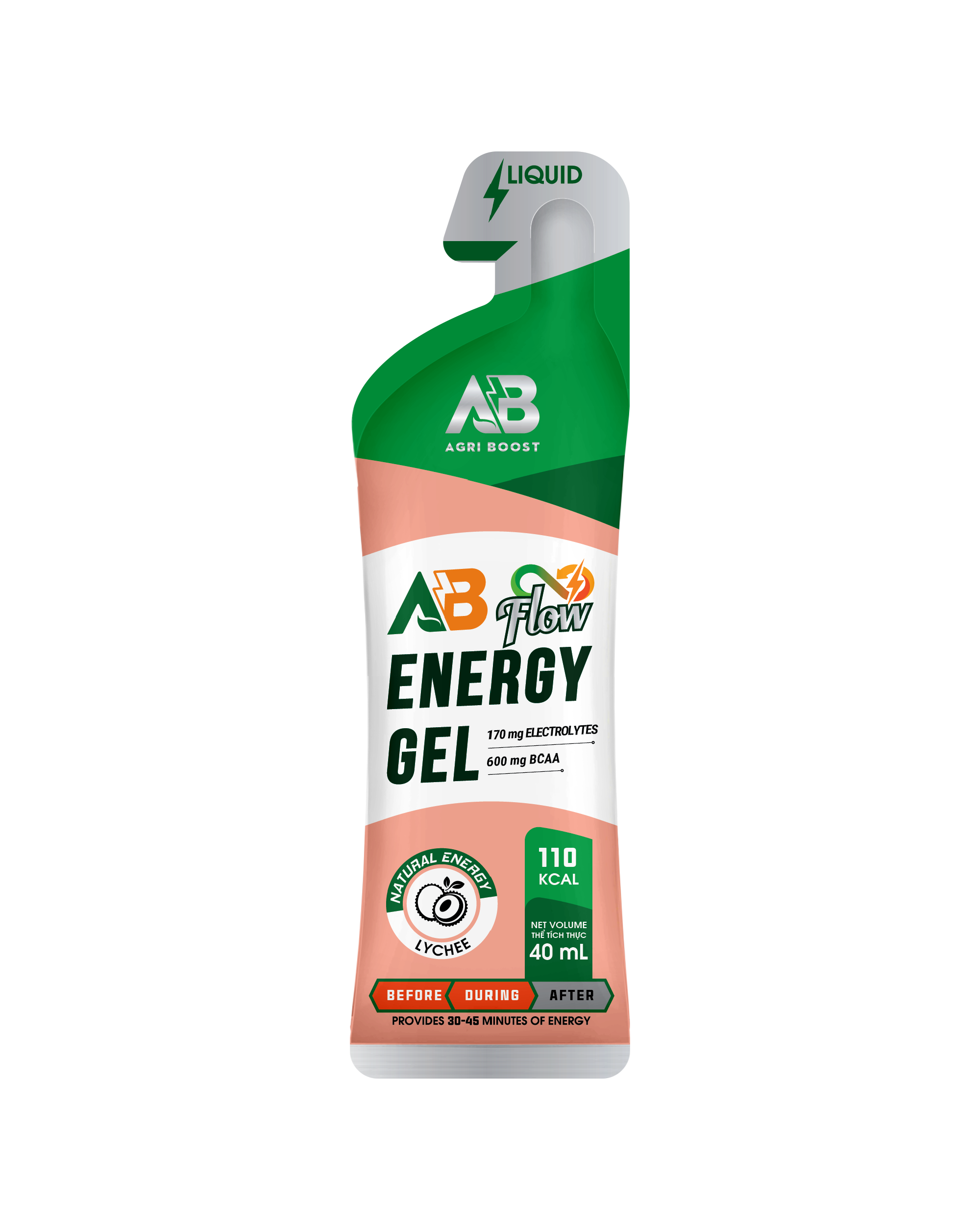 AB FLOW là gel năng lượng thể thao sử dụng nền carbohydrate từ nguyên liệu thiên nhiên kết hợp với BCAA, hệ khoáng chất (Na, K, Ca, Mg) và bột MCT. Sản phẩm được thiết kế dành cho người tập luyện thể thao, đặc biệt là các môn sức bền và vận động cường độ cao (chạy bộ đường dài, đạp xe, triathlon, tập gym cường độ cao…), để duy trì nhịp vận động ổn định trong suốt buổi tập và thi đấu. Sản phẩm phù hợp cho các giai đoạn chạy đều, giữ pace, hạn chế tụt lực giữa chừng.